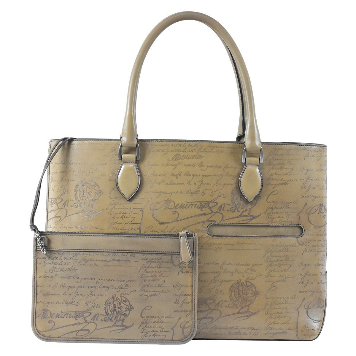 > ベルルッティ 美品 希少 グレー 別売りポーチ付 トゥジュール スクリット カリグラフィ 美しいパティーヌ メンズ トートバッグ BERLUTI