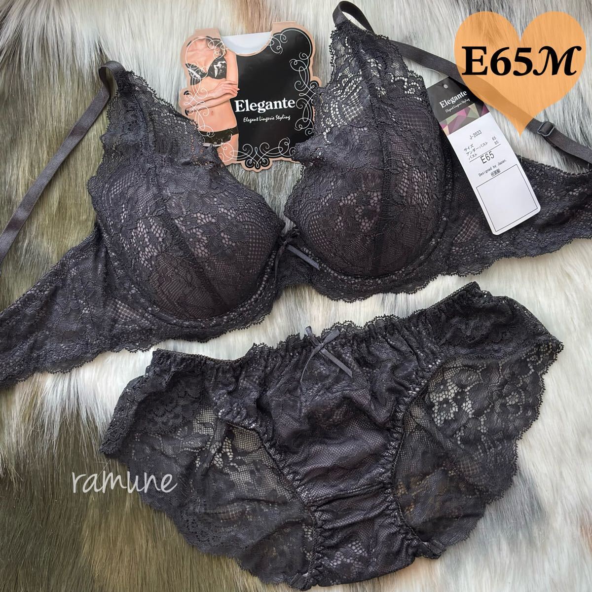 > 【E65M ダークグレー 上下セット】新品 ブラ&ショーツセット ブラジャー ショーツ パッド付き レース 透けパンティ グラマー Eカップ