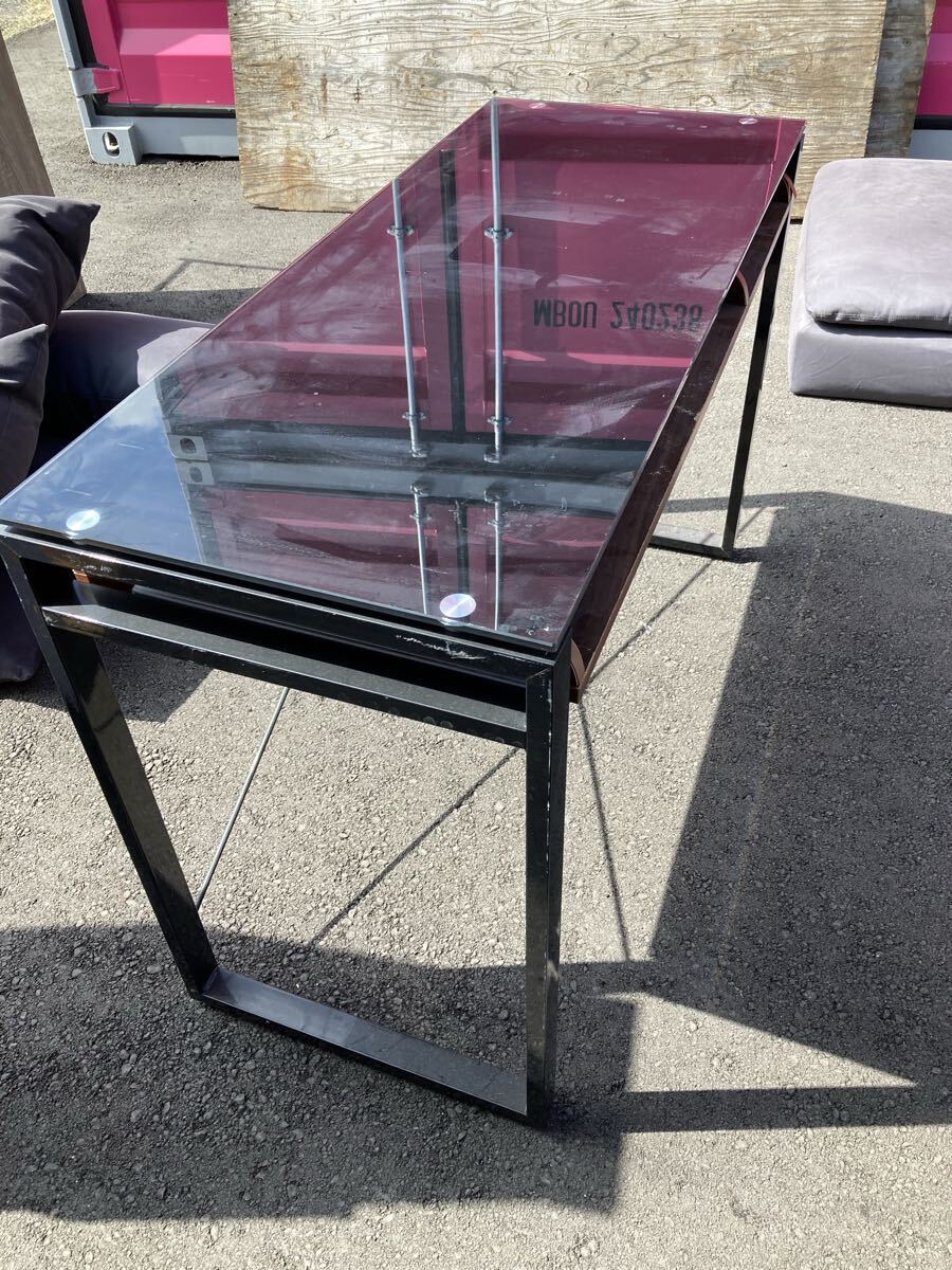 - 【家財】 ガラス テーブル 勉強 事務所 カウンター 仕事 引き出し付き