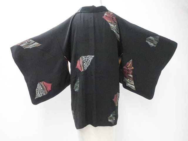 > 《古美術京松》リサイクル着物 黒羽織 昭和レトロ 漆 金糸 羽織紐別売り 正絹 身丈約78.5cm 裄丈63.5cm kyo7z09-1122