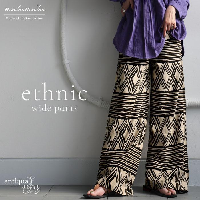 - アンティカantiqua★どんなシーンでも映える! 一目で釘付け『エスニック柄ワイドパンツ』★Mサイズ