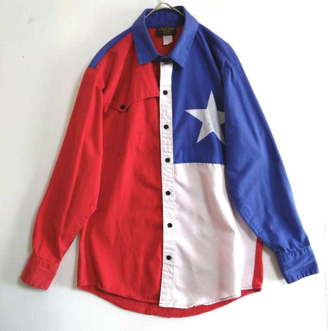 - 2553 WillWest 厚手長袖ワークシャツ M 蒼赤白 星条旗 US古着