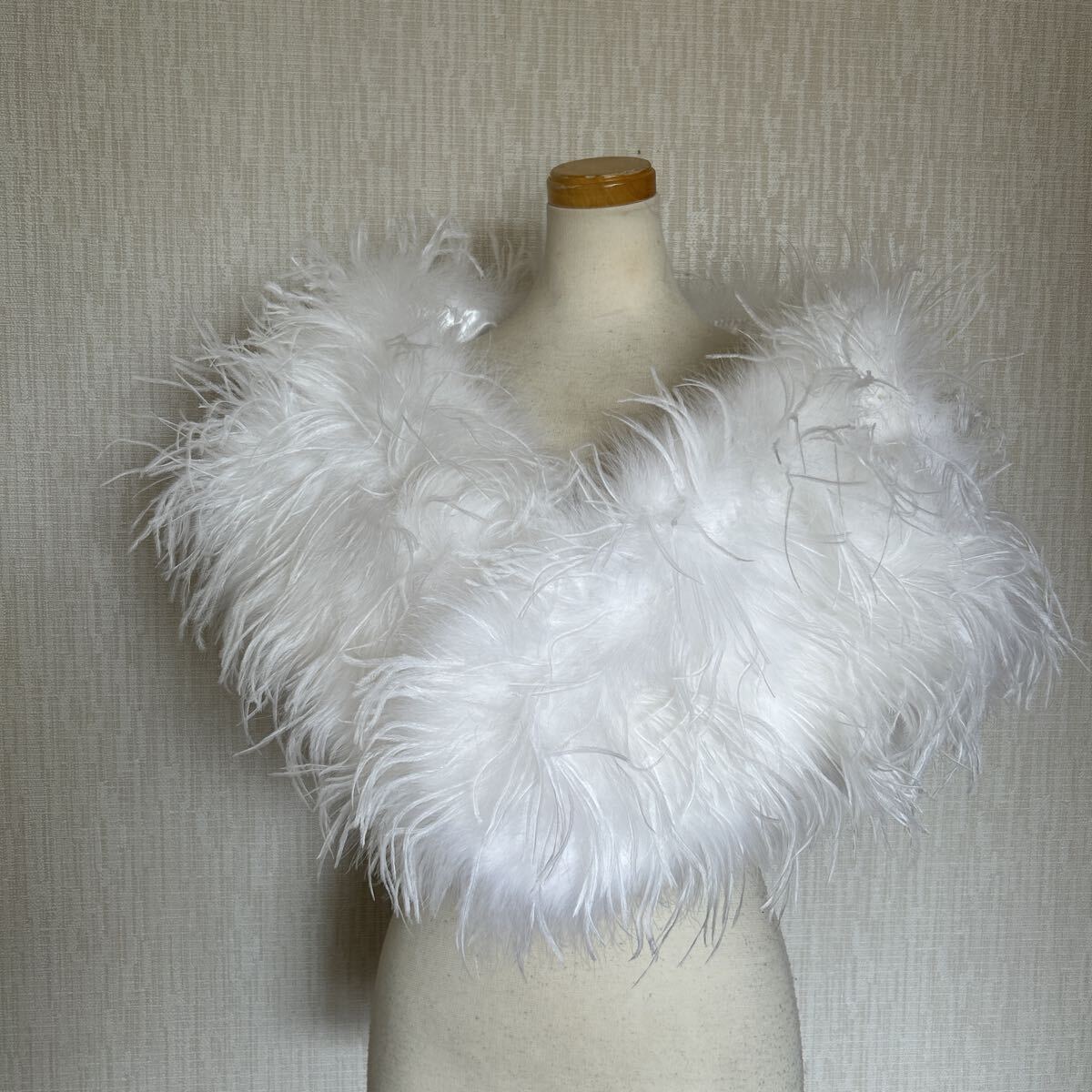 - 和装小物 ショールC●七面鳥 羽毛 フェザー ファー ティペット ストール 防寒 成人式 振袖 卒業式●白●和装*着物*和服*アンティーク●