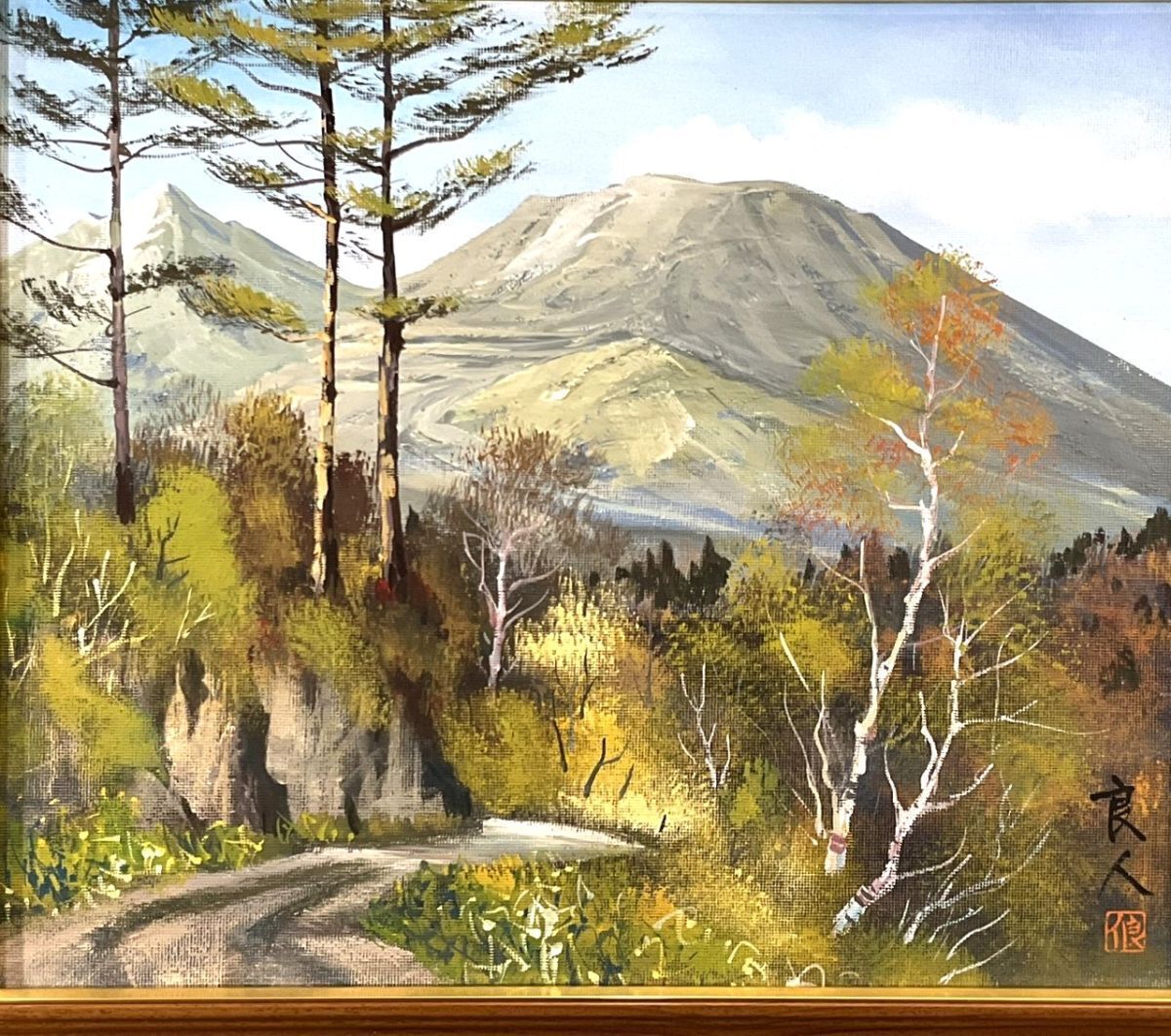 模写■油彩■不詳・良人■山のある風景■細密に描かれた傑作■額付絵画 8