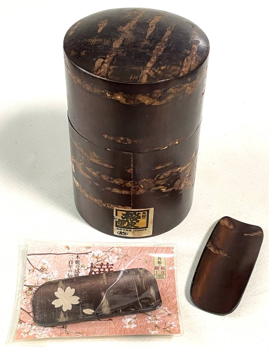 - 昭和の伝統工芸【 秋田角館 樺細工 】茶筒と茶匙