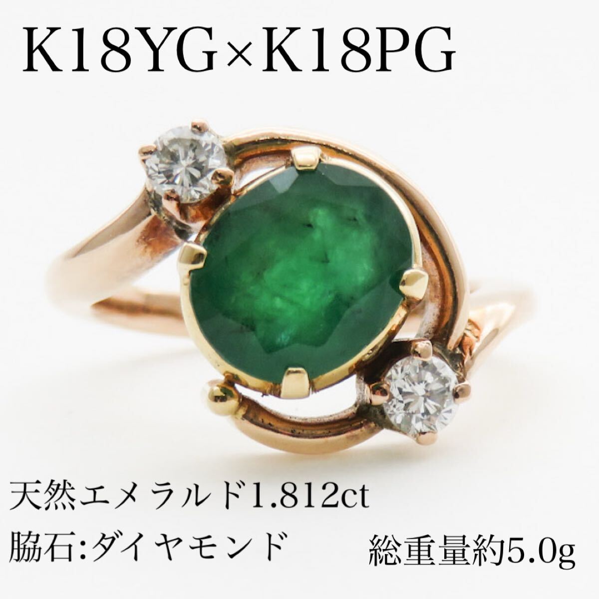 - 【本物保証】K18YG×K18PG 天然エメラルド1.812ct ダイヤモンドリング 総重量約5.0g 日本宝石科学協会ソーティング付 お買い得 中古美品