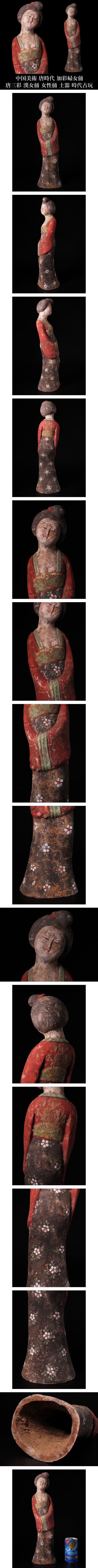 - 【ONE'S】中国美術 唐時代 加彩婦女俑 唐三彩 漢女俑 女性俑 土器 時代古玩 高36.7cm 古美術品