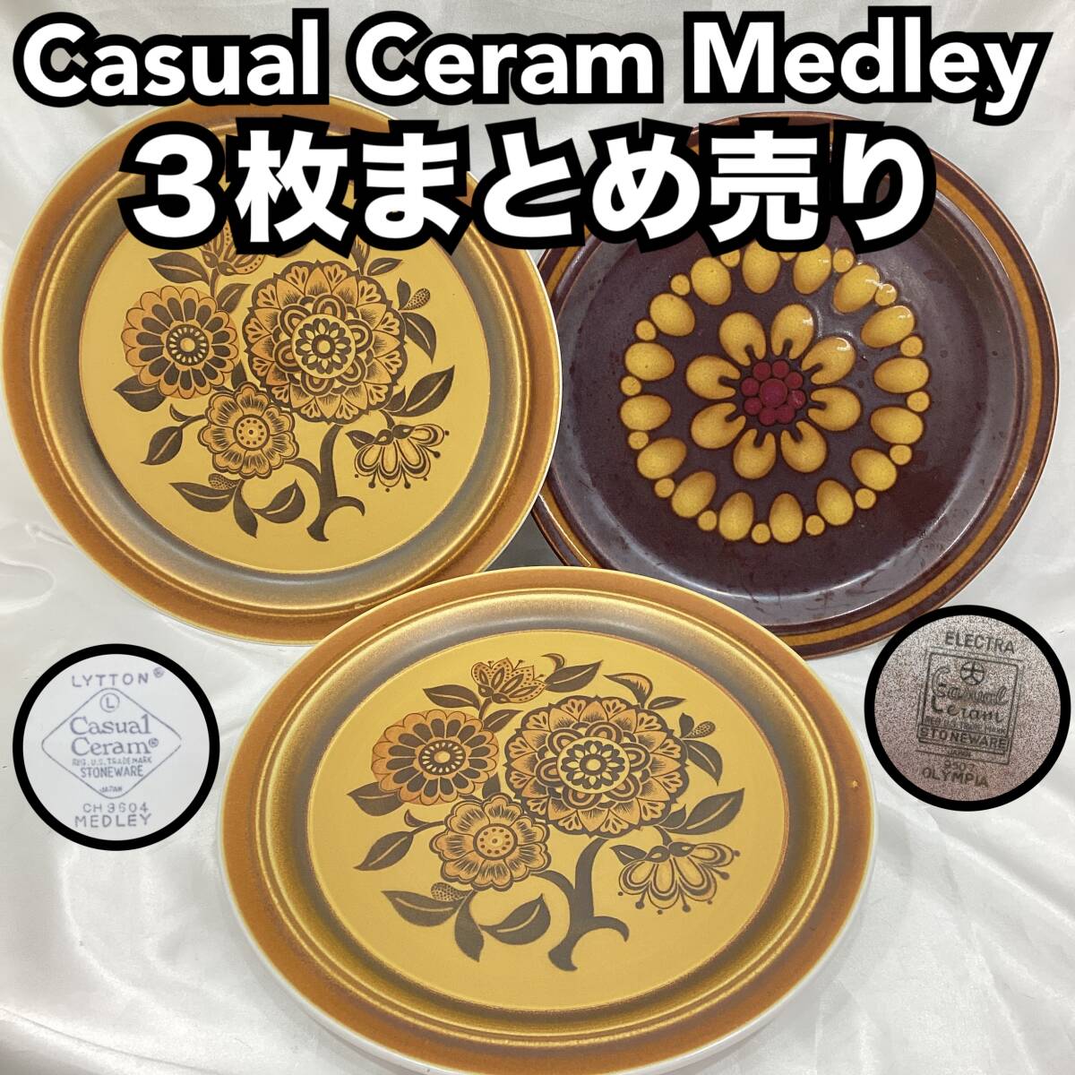 > ヴィンテージ Casual Ceram Medley シリーズ ストーンウェア トレイ 3枚売り 直径約31cm ミッドセンチュリーモダン ボヘミアン 【H1892】