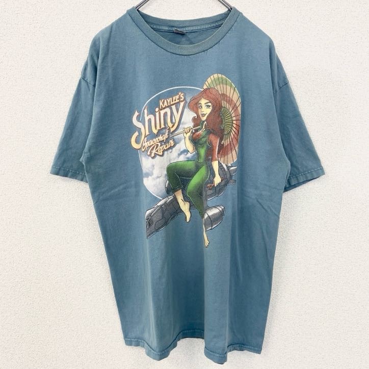> 古着 used メキシコ製 TEE FURY 半袖イラストプリントTシャツ Spacecraft Repair 水色 Lサイズ