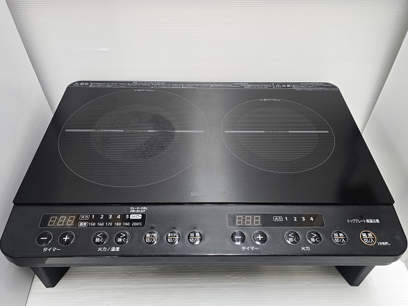 - 【中古品】 アイリスオーヤマ IRIS OHYAMA 2口 IHクッキングヒーター IHコンロ 脚付 IHK-W13S-B 2021年製 〇YR-18599〇