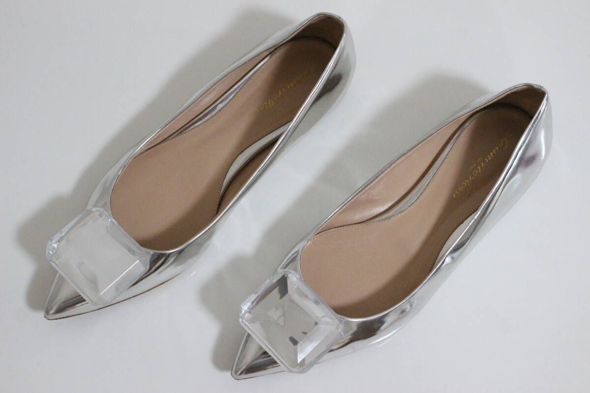 - F855 美品 Gianvito Rossi ジャンヴィトロッシ JAIPUR 05 ジェムストーン ポインテッドトゥ パンプス シルバー 39 約26cm 定価18万