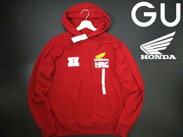 > 絶版■ 新品 未使用 即決! GU ジーユー ホンダ コラボ フーディ スウェットパーカ XLサイズ HONDA HRC メンズ WINE カーマイン