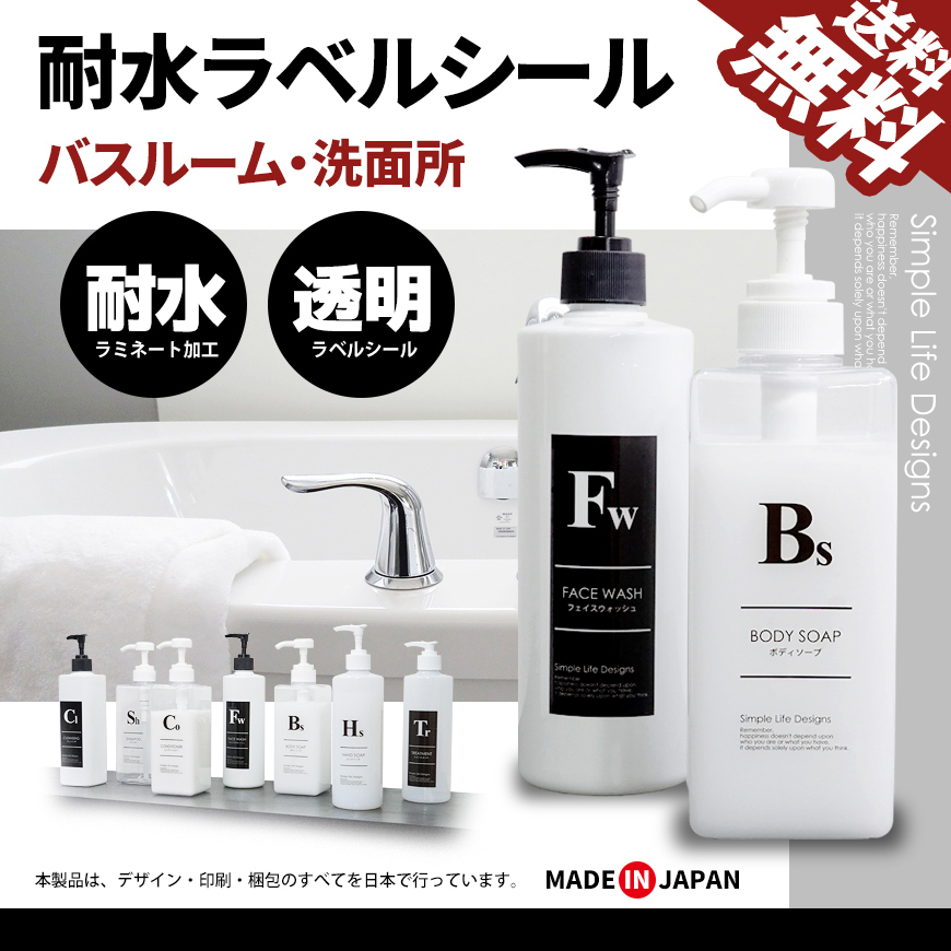 > 耐水 ラベルシール おしゃれ雑貨 ステッカー 浴室 バス用品 シャンプー 詰め替え ボトル 白黒 モノトーン 7種類 ネコポス 送料無料