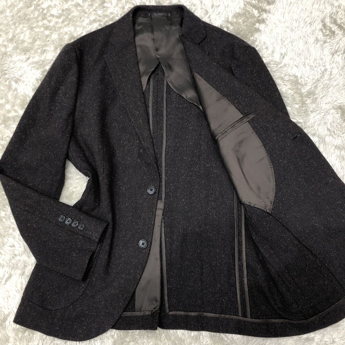 > 超希少XL!ビームス【圧倒的高級感】BEAMS テーラードジャケット ブラウン系 ソフトツイード 2B 背抜き 艶感◎ 大きいサイズ 50(LL相当)