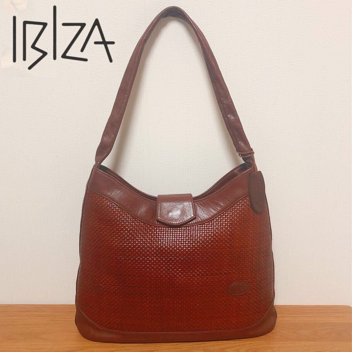 - IBIZA イビサ ワンハンドル ショルダーバッグ トートバッグ ハンドバッグ メッシュ イントレチャート 編み込み ブラウン イタリア 限定品