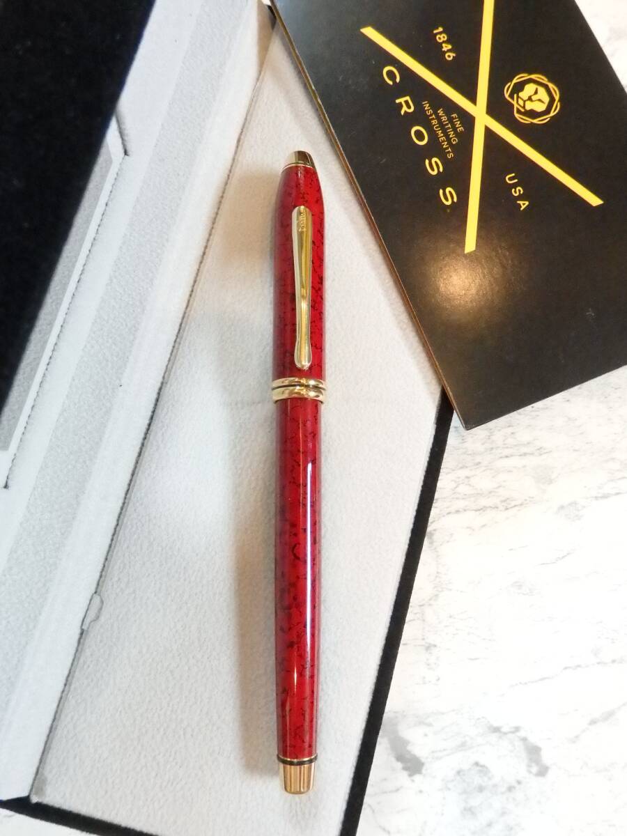 > ◆【きれいな良品】【送料230円~】Cross クロス タウンゼントコレクション レッドマーブル万年筆 ペン先:14K585ソリッドゴールド F