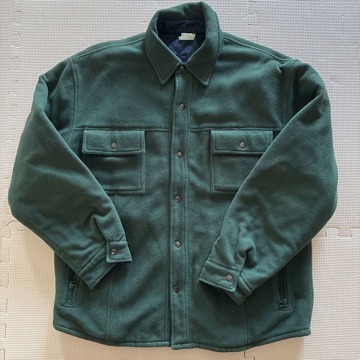 - 00s【Gap】ギャップ リバーシブル シャツジャケット フリース×ナイロンキルティング Mサイズ モスグリーン/ネイビー スナップボタン Y2K