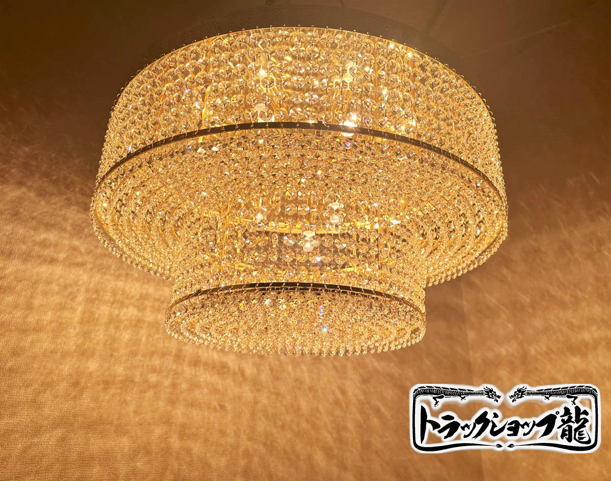 - 新品 直径60cm 天吊りシャンデリア ケーキ型 2段タイプ フルゴールドメッキ クリスタルビーズ レトロ 観光バス デコトラ 車内照明 C0607S