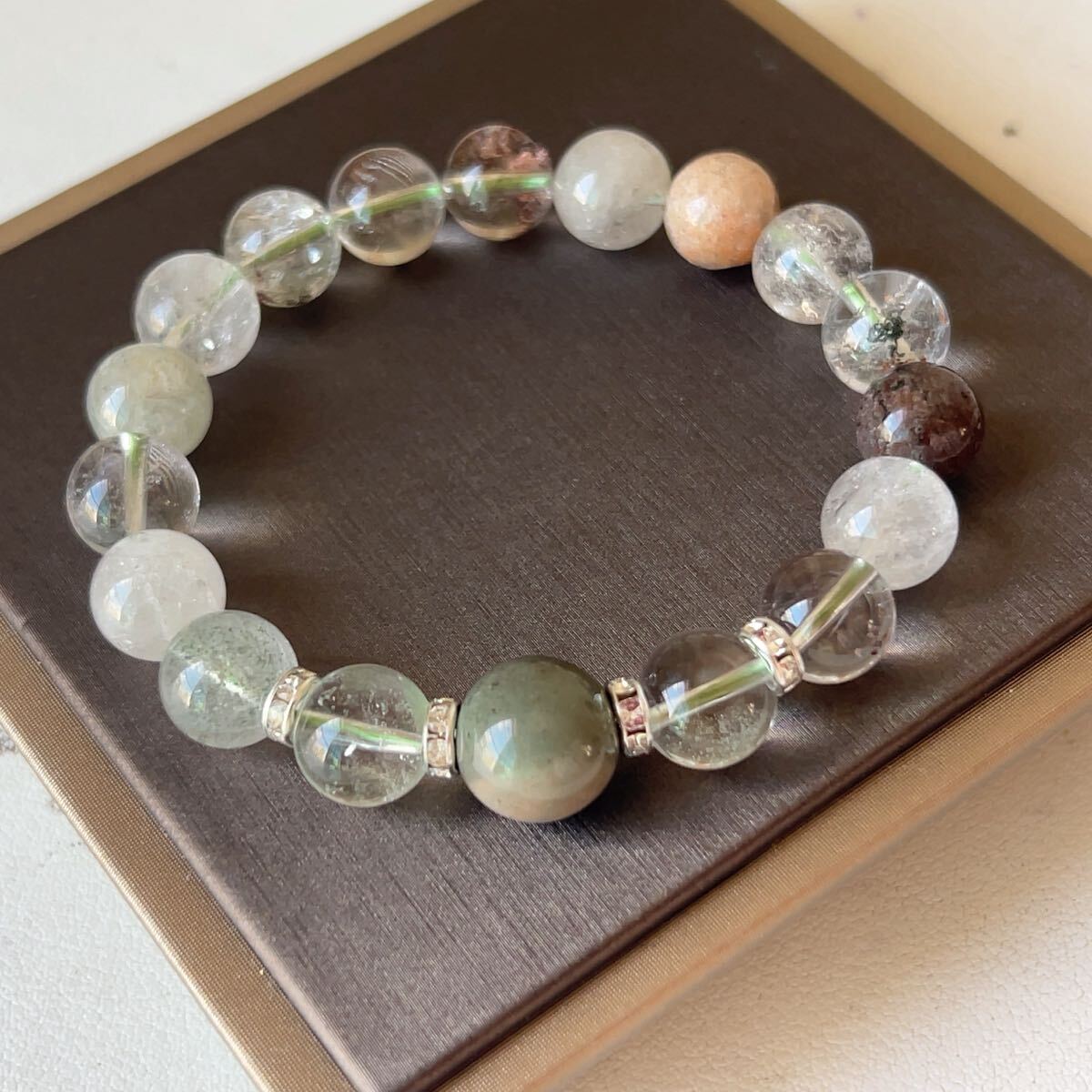 > ◇ガーデンクォーツ(庭園水晶)+◇ アルシャアゲート 1粒◇パワーストーン◇ブレスレット◇天然石◇プレゼントにも038B10801