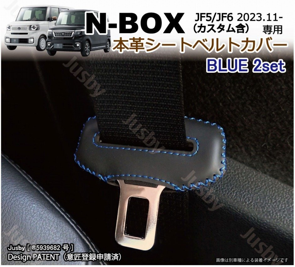 > (本皮/本革)ホンダ 新型N-BOX カスタム含 JF5 JF6 専用 シートベルトカバー(青ステッチ) レザーカバー ドレスアップ 内装パーツ カスタム