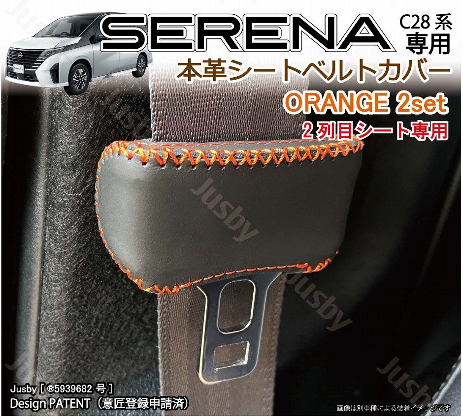 - 新型セレナ C28用 本革シートベルトカバー (2列目用) (オレンジステッチ) SERENA 本皮レザーカバー パーツ アクセサリー NISSAN 異音傷防止