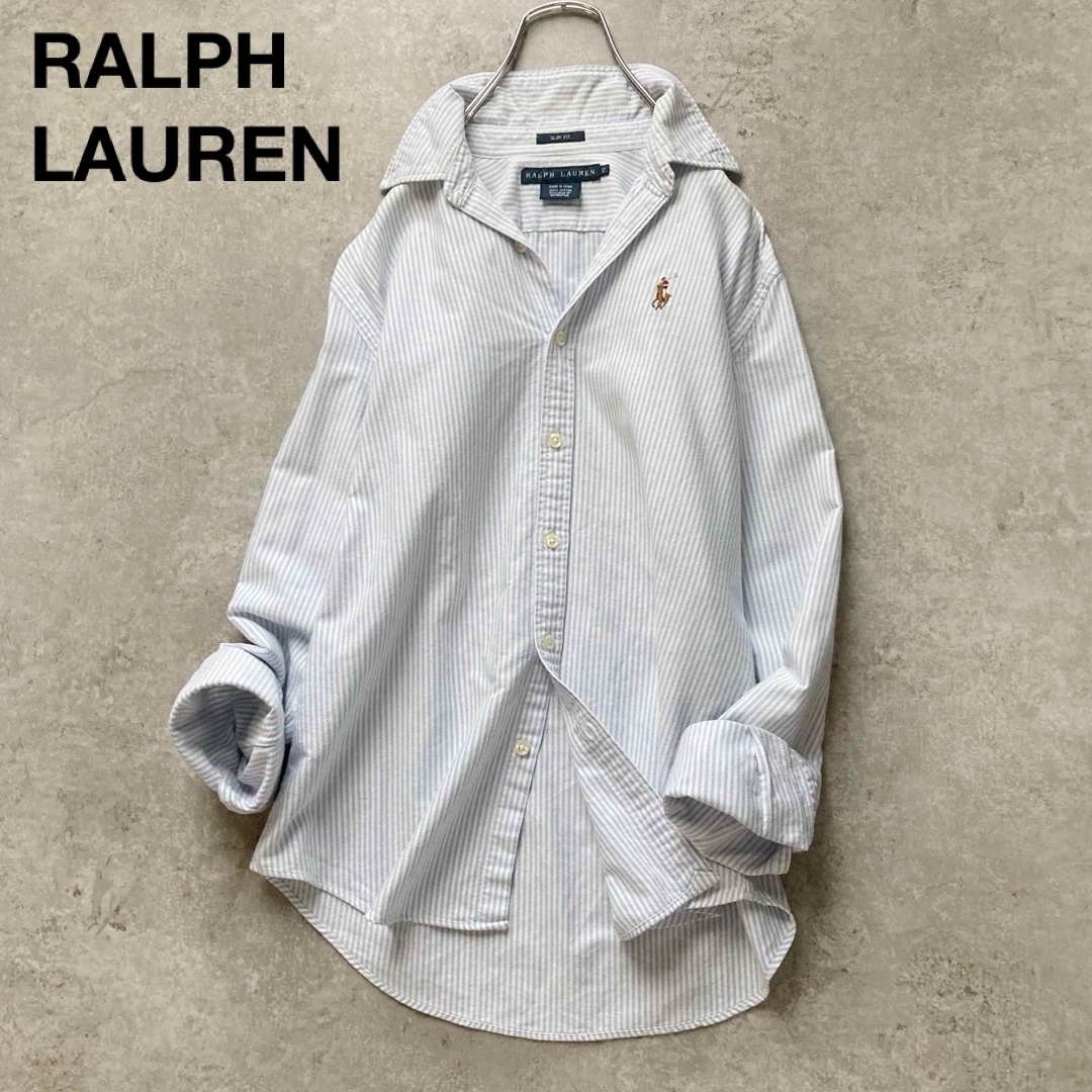 - *ラルフローレン ストライプシャツ ボタンダウンシャツ スリムフィット コットン ロングスリーブ 長袖 ロゴ刺繍 ポニー 青白 2サイズ