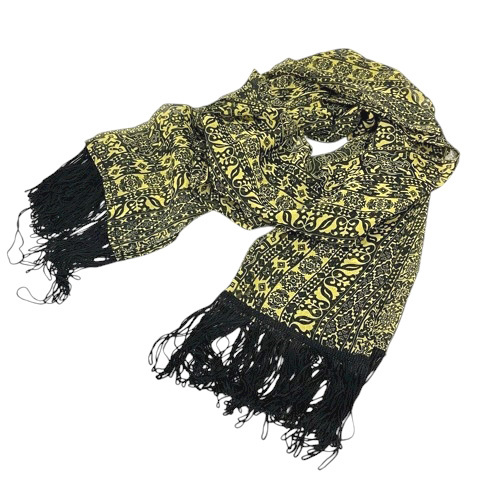 - スライ SLY スカーフ ストール シアー 総柄 薄手 黒 ブラック 黄 イエロー レディース