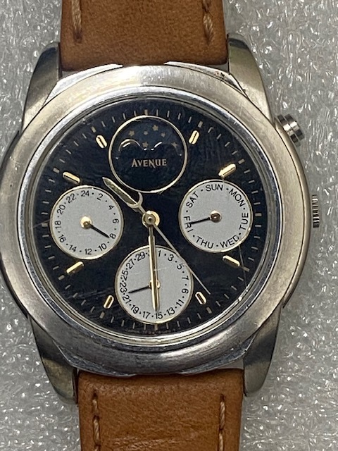 - SEIKO セイコー AVENUE アベニュー 7F39-6060 トリプルカレンダー ムーンフェイズ BLACK 黒文字盤 QZ Unisex ユニセックス 電池交換済 稼働