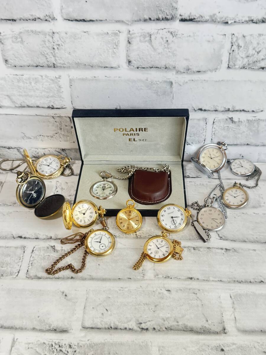 > P882 懐中時計 ポケットウォッチまとめて12点 クォーツ SEIKO/ALBA/RICOH/POLAIRE/BOSTON CLUB/EXCELLENT/KRONE/SAIKA 他