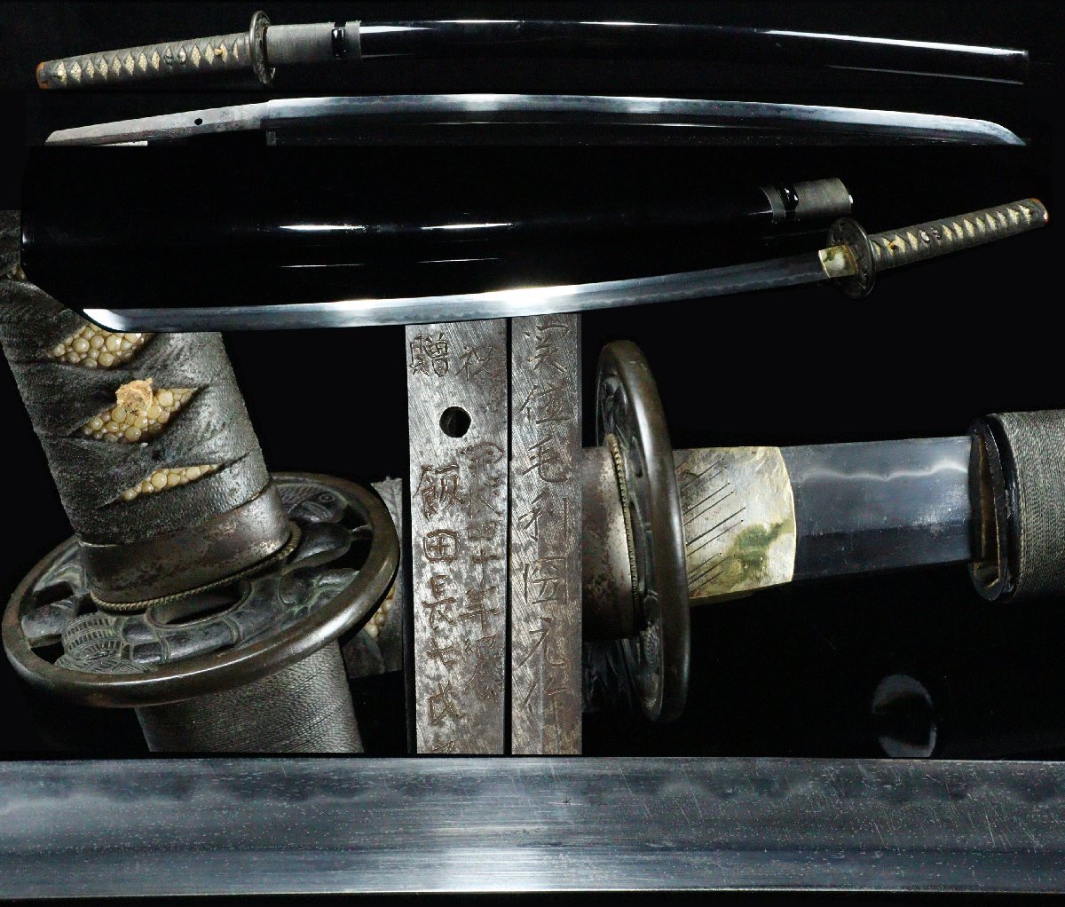 - 【ASAHI】関住毛利国元作 関刻印 祝贈 開校四十年記念 飯田長七氏之 互の目刃文 恵比寿大黒図鍔 刀剣武具[79173qyt]