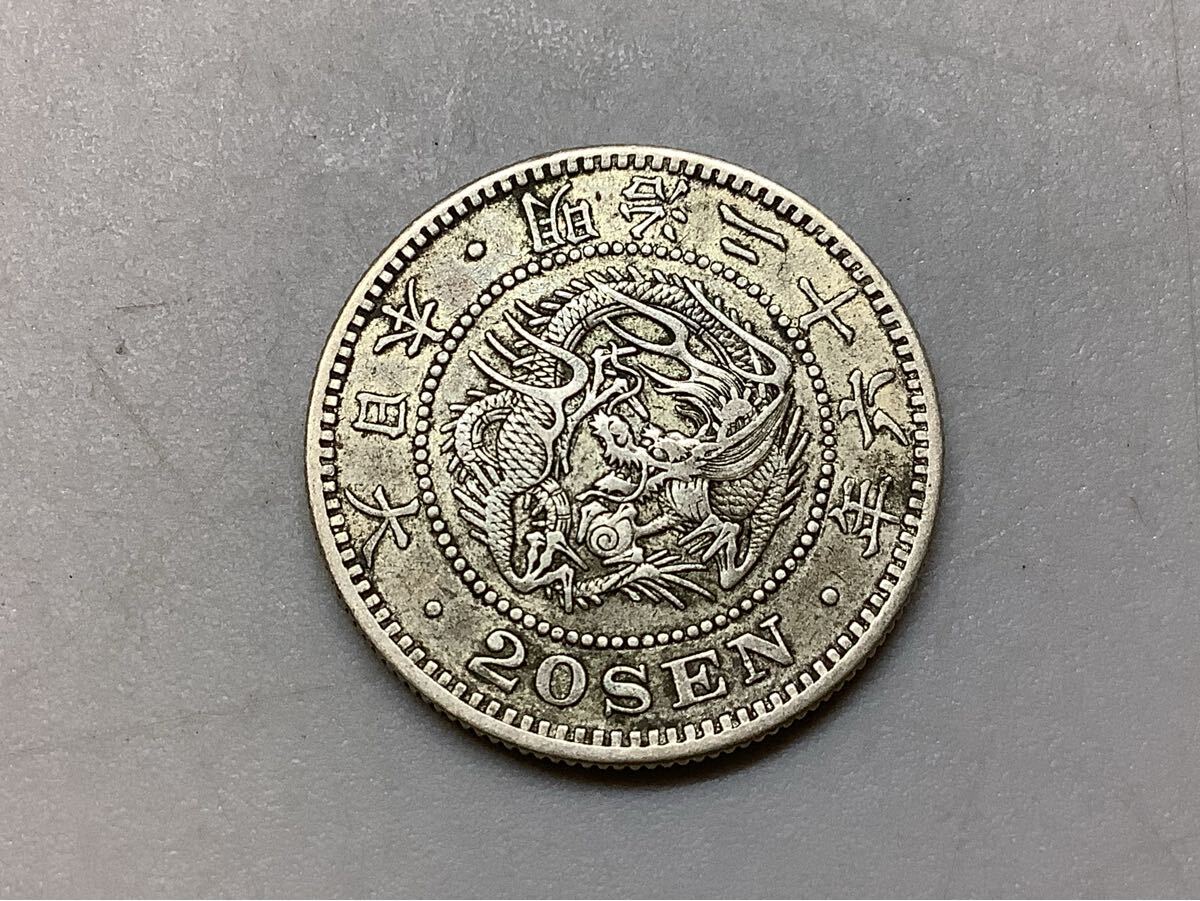 - N8 竜20銭銀貨 特年 明治26年 二十銭 硬貨 20銭 大日本 明治二十六年 古銭 竜 旧貨幣 日本硬貨 銀貨