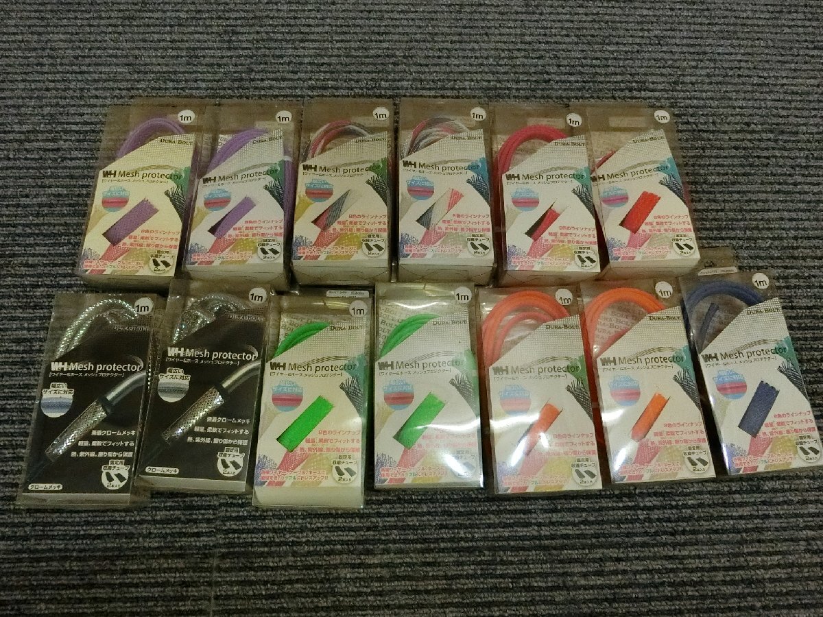 ◆DURA-BOLT/ワイヤー&ホースメッシュプロテクター/Φ10mm×1000mm/クロームメッキ/ライムグリーン等/ドレスアップ/13点セット