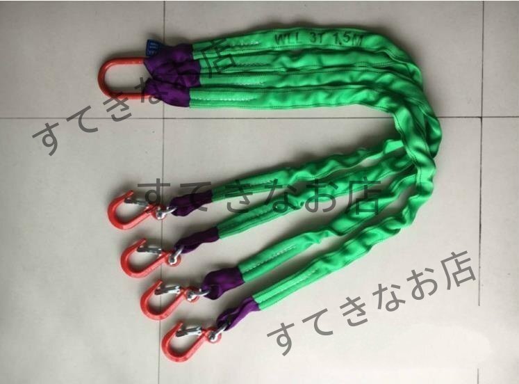 - 4点吊りスリングベルト 建築 土木用 ベルトスリング 玉掛け 合金鋼製フック付き リング付き ポリエステル製 1m 耐荷重3t