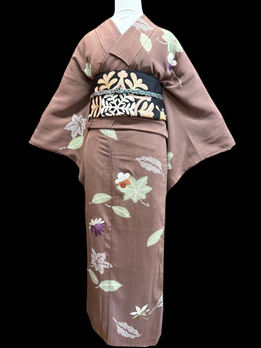 - アンティーク着物◆手刺繍 梅 菊 紅葉 吹き寄せ 付け下げ 大正ロマン 正絹 きものさらさ奈良店