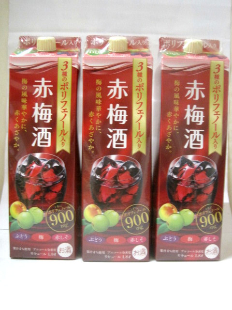 - サッポロ 3種のポリフェノール入り赤梅酒 1.8LパックX3本セット
