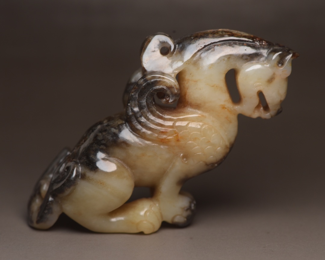 - 【超珍館蔵】和田玉製 細密彫 玉獣 置物 賞物 古賞物 古董品 古美術品 時代物 旧家蔵出 稀少珍蔵品