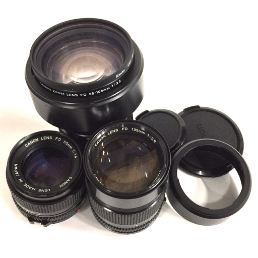 > CANON LENS FD 135mm 1:2.8 50mm 1:1.4 35-105mm 1:3.5 カメラレンズ 3本まとめセット QN104-7