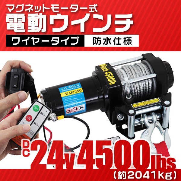 > 電動ウインチ DC24V 4500LBS(2041kg) 強力マグネット式モーター 有線コントローラー & 無線リモコン付 トラック ジムニー ウィンチ