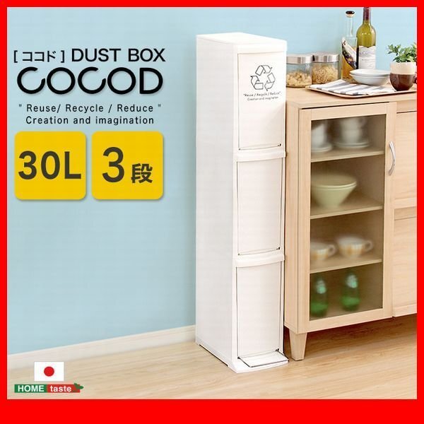 - ゴミ箱★縦型分別ダストボックス フラップ式 ペダル式 3段/スマート スリム 幅21cm 省スペース 容量30L 蓋付き/日本製 完成品/ホワイト/zz