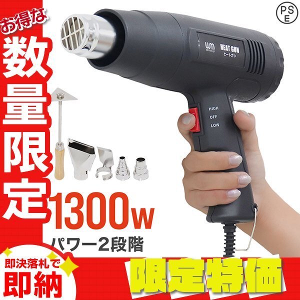 > 【限定セール】新品 ヒートガン ホットガン 超強力1300W PSE認証 アタッチメント付 2段階 強弱調節 塗装 乾燥 シュリンク 包装 DIY 工具