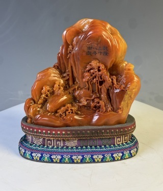 - 『三希堂』 清代 乾隆38年御製 老寿山石 田黄石彫山水置物 細工 手彫り 中国古賞物 重量:1486g 高さ14.1cm 幅15.5cm C45