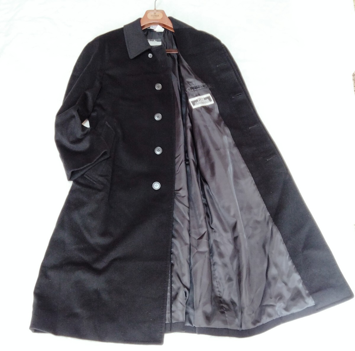 > クリーニング済*ピュアカシミヤ100%*ロングコート*黒*メンズMゆったりめ*92A5*ステンカラー*肩パットなし*ブラック*