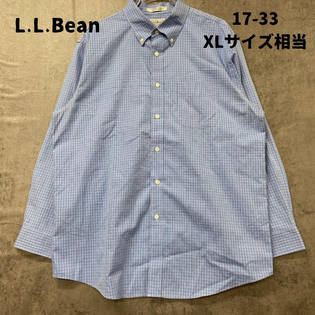 - エルエルビーン 青チェック柄 長袖シャツ XL相当 ボタンダウン【6063】