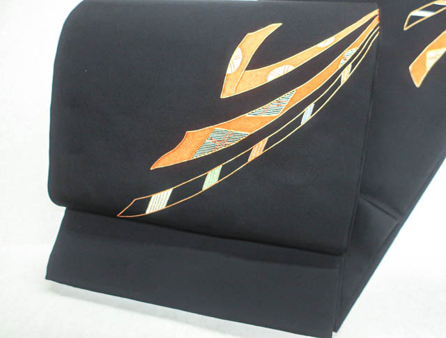 - 《京都一輝堂》【着物】 九寸名古屋帯 開き仕立て 金駒刺繍 古典文様 24B-1391