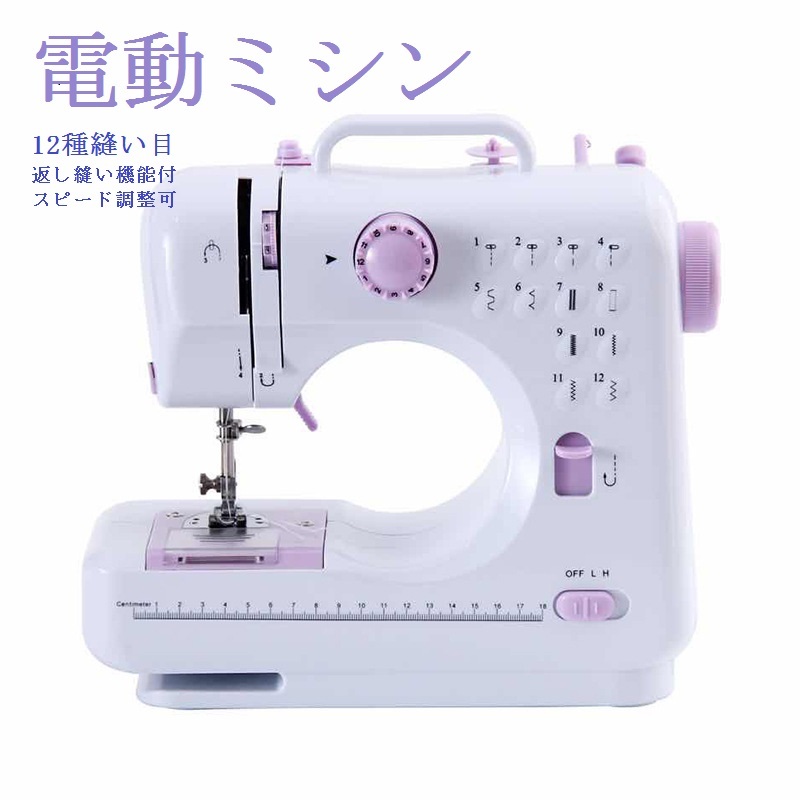 > ミシン コンパクト 家庭用電動ミシン 初心者利用可 操作簡単 12種縫い目 返し縫い機能付 スピード調整可