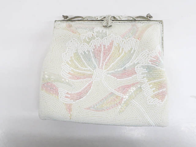 - 《古美術京松》リサイクル着物 和装小物 アンティーク ビーズバッグ 花 kyo7w08-1095