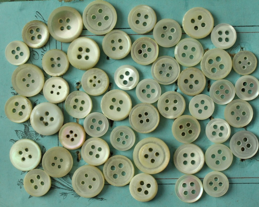 - 即決 シェルボタン 50個 φ10〜14mm 4穴 貝ボタン ヴィンテージ ハンドメイドパーツ フランス輸入