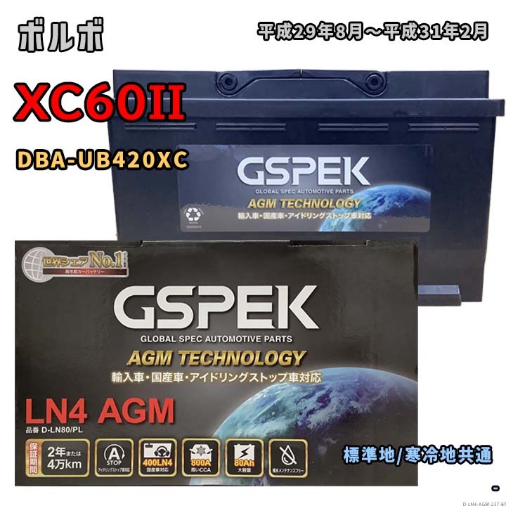- バッテリー GSPEK D-LN80/PL ボルボ XC60II DBA-UB420XC 平成29年8月~平成31年2月 T5 AWD 対応 LN4AGM 互換 237