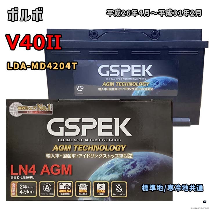 - バッテリー GSPEK D-LN80/PL ボルボ V40II LDA-MD4204T 平成26年4月~平成31年2月 D4 対応 LN4AGM 互換 209