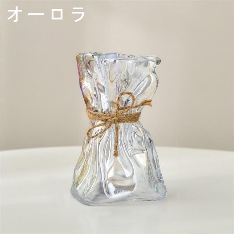 - 花瓶 フラワーベース ガラス 可愛い 小さい ドライフラワー インテリア シンプル 北欧 花器 ガラス花瓶 リビング 玄関 寝室 オーロラ